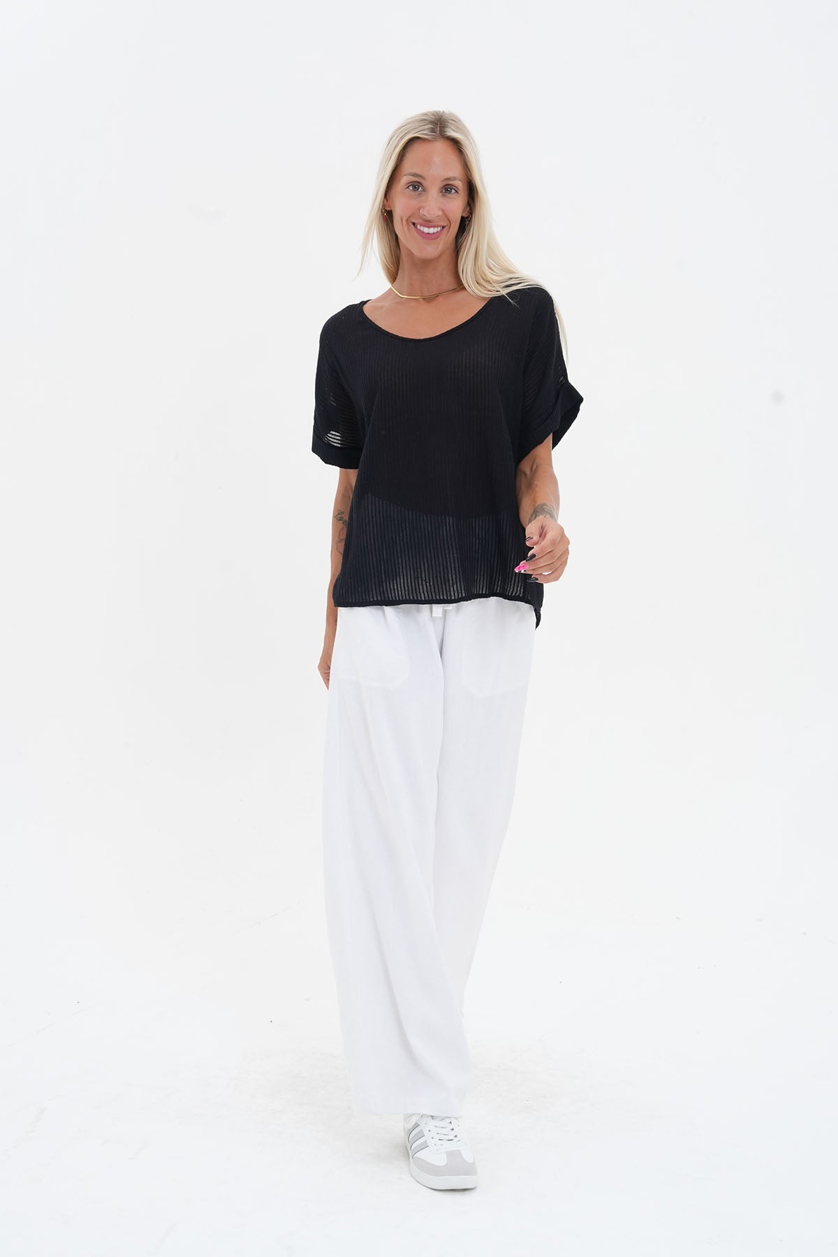 The Carmen Top in Black features 100% cotton fabric, delivering exceptional breathability and softness for all-day comfort. Its round neckline and short sleeves provide a classic, versatile look, while the relaxed fit ensures ease of movement. Perfect for pairing with casual or smart outfits, this top balances style with functional comfort effortlessly.