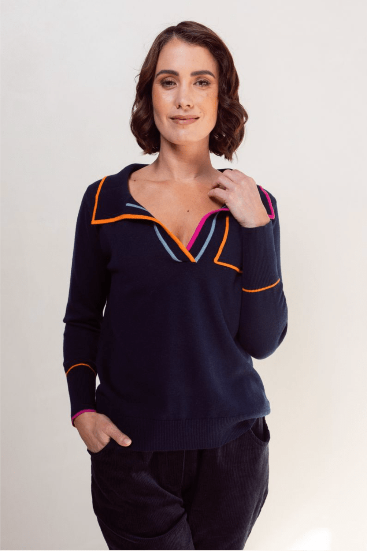 Collared Trim Sweater - Night Sky - SS24