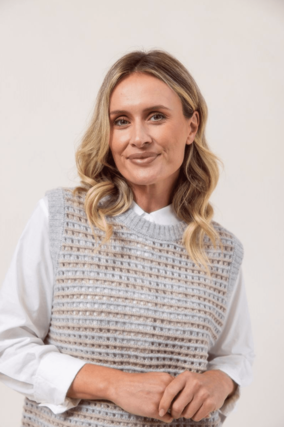 Pointelle Vest - Silver/Natural - SS25