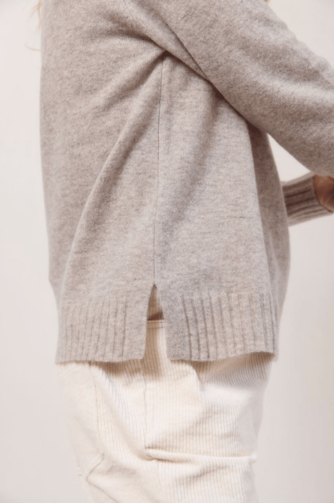 • Side splits at ribbed hem