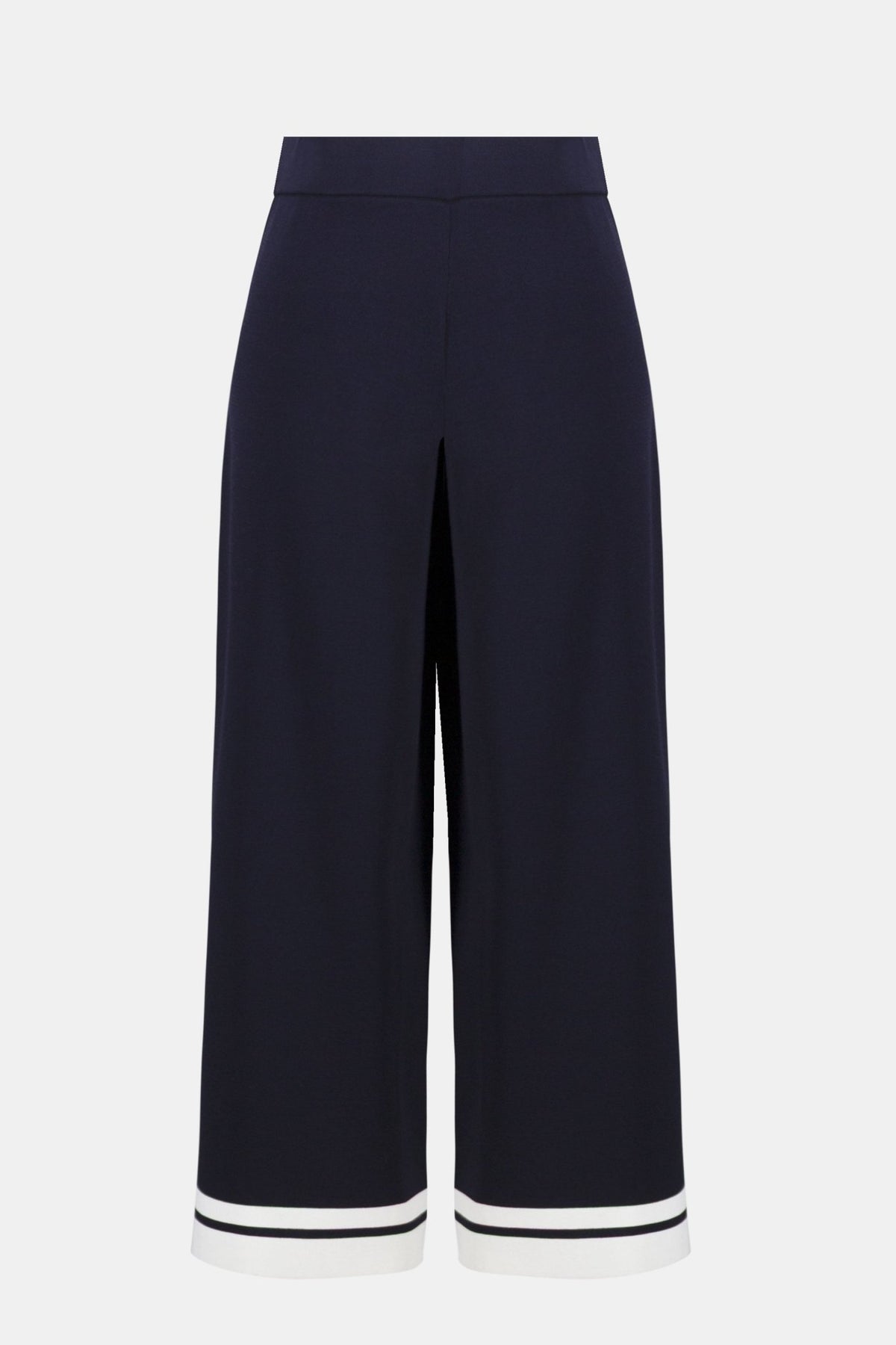 Ahoy, These sweater knit culotte pants, crafted from dry viscose and nylon yarn in full needle stitch, feature a bold border stripe for added flair. With an inserted elastic waistband, they offer both comfort and style, making them an effortless addition to any wardrobe. adventurers! Joseph Ribkoff is an outstanding deisgner with the flare of having us ladies feel a million bucks, a man that knows how to flatter a lady.