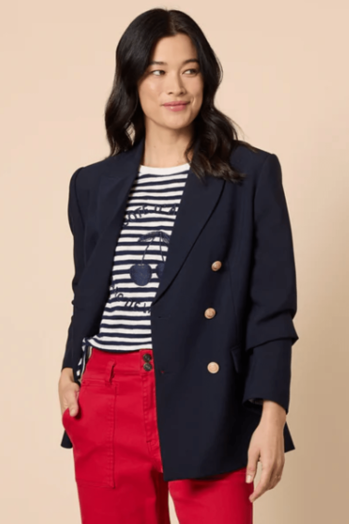 Embrace effortless French Riviera charm with the Cote D'Azur Cherry Tee. This navy-and-white striped long-sleeve features a delightful embroidered cherry detail that brings playful personality to a nautical classic. Crafted from a soft cotton blend, it layers beautifully or stands alone as a versatile everyday piece. Style it with denim for understated cool or pair with bright chinos for a breezy, sun-soaked vibe that works year-round.