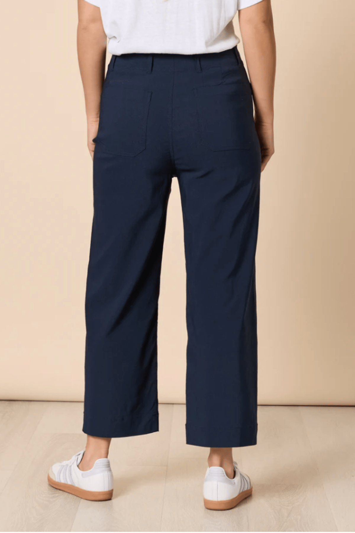 Meet your new wardrobe essential: the Marine Wide Leg Pants in Navy. High-rise, wide-leg silhouette pairs effortlessly with a lightweight stretch fabric that moves with you all day long. Deep front pockets offer genuine storage and a subtle edge, while the relaxed fit delivers comfort without compromise. Whether you're jetting off or styling your weekend, these pants strike the perfect balance between function and fashion—versatile enough for any occasion.