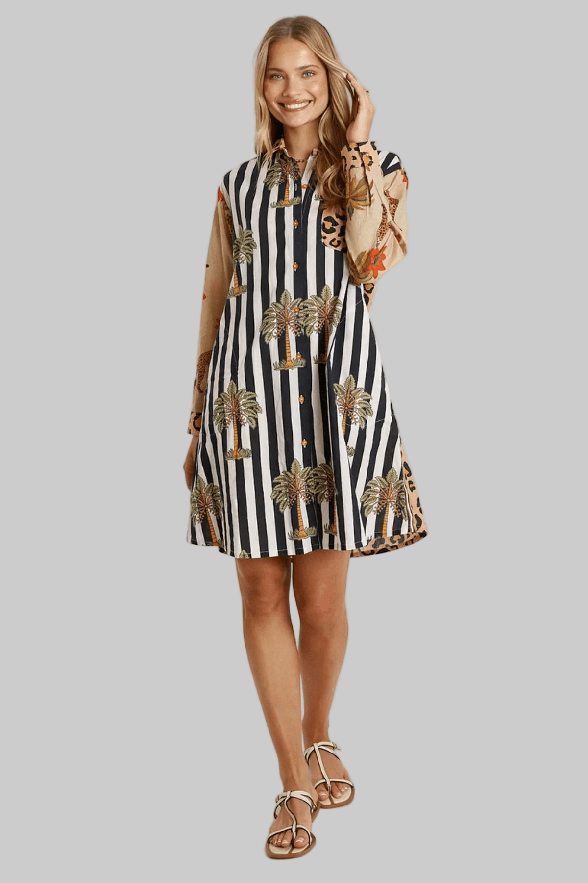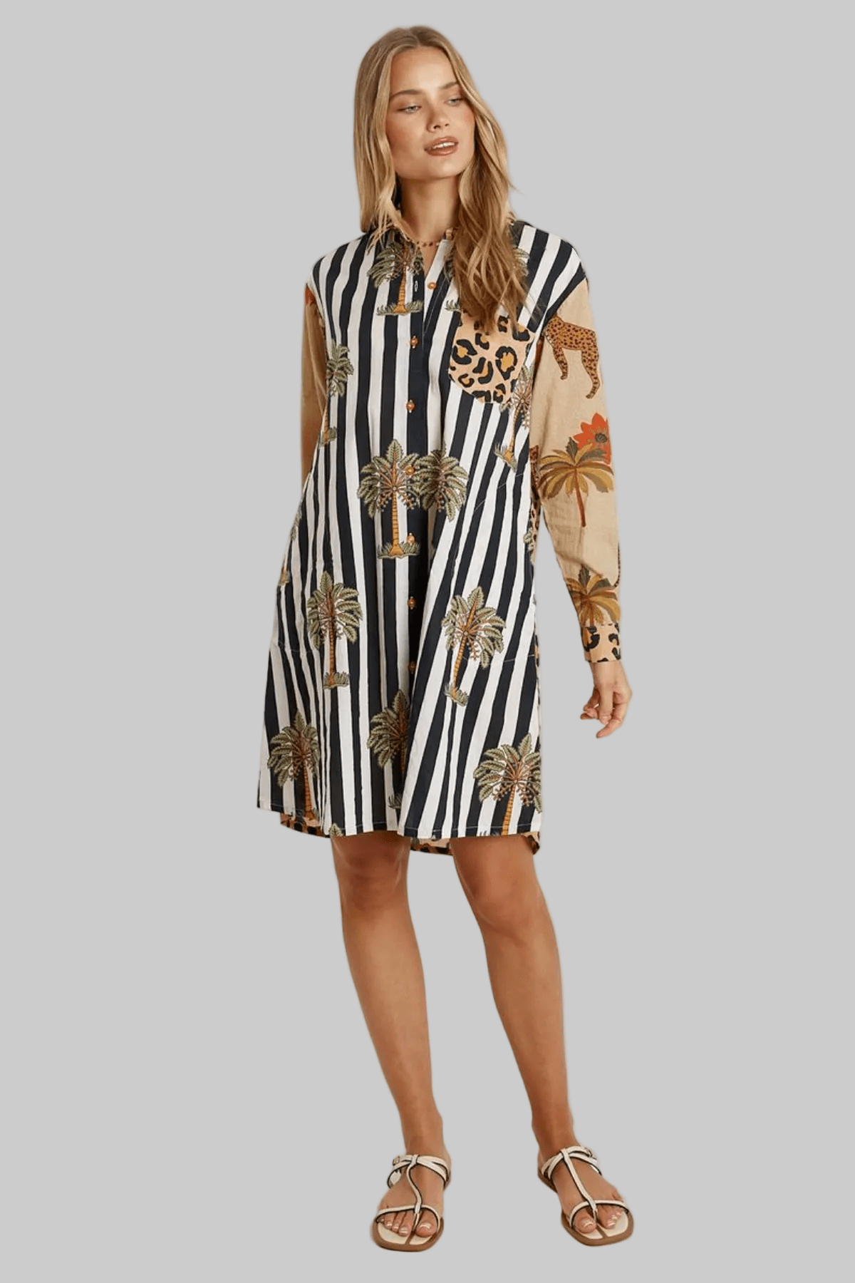 The LulaLife Congo Shirt Dress brings effortless sophistication to your everyday rotation. Crafted from 100% cotton and designed in Australia, this collared shirt dress features a buttoned-through front, full-length sleeves with cuffed details, and a graceful knee-length cut. Functional side pockets and a curved hem elevate the classic silhouette, while versatile prints invite endless styling possibilities. Machine washable for convenient care, it transitions seamlessly from weekday wear to weekend leisure.