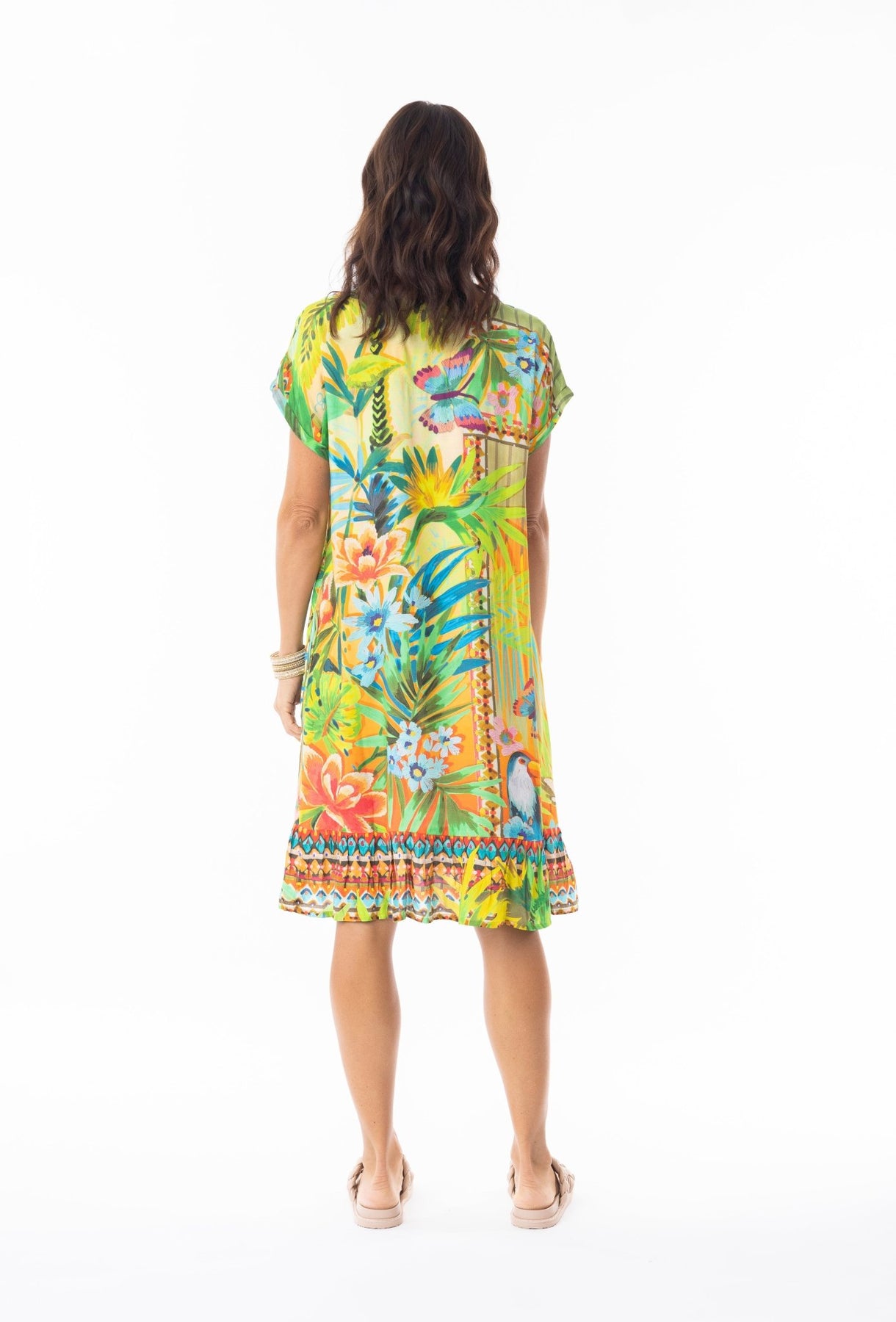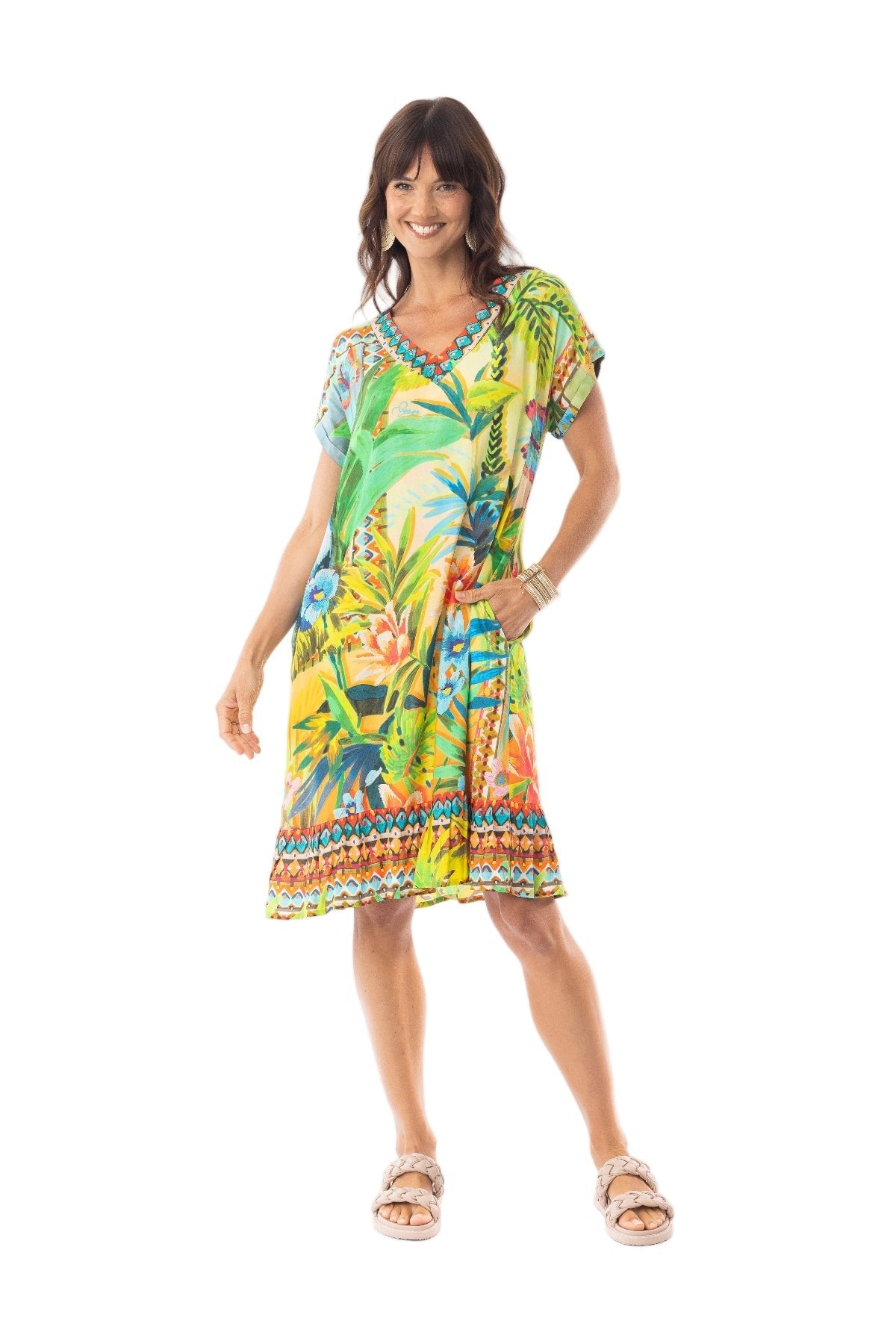 The Georgia frill Sleeve Dress features a soft, breathable 100% rayon fabric that ensures comfort throughout warm days. Its knee-length design includes a refined V-neckline with subtle embellishments, cap sleeves, and convenient pockets. The gently frilled hem adds a touch of movement and style to the silhouette, making it an excellent choice for casual outings or coastal walks. This dress balances practical details with elegant finishing touches for an effortless, polished look.